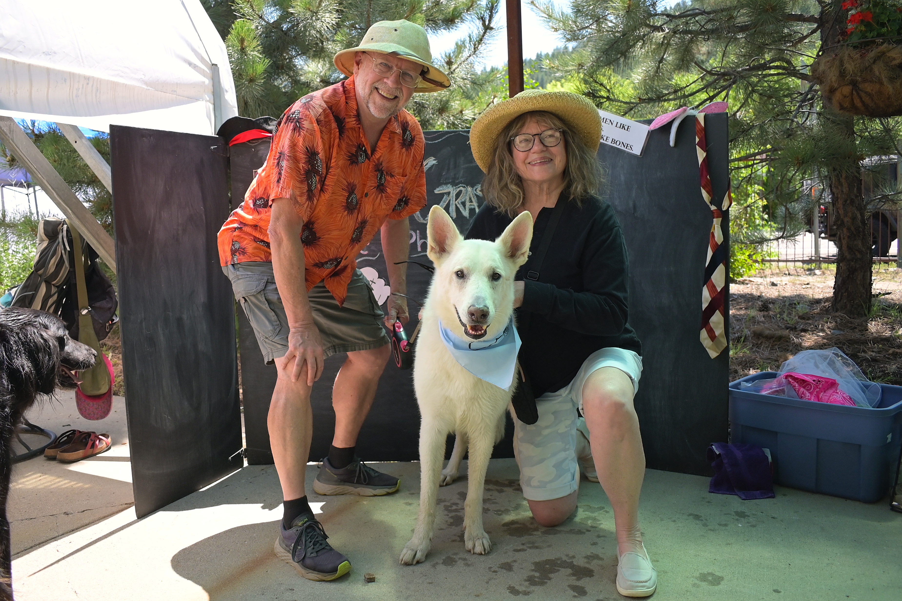 2023-07-21 Evergreen Ambary Garden Dog Photobooth seven couple with large white dog 003